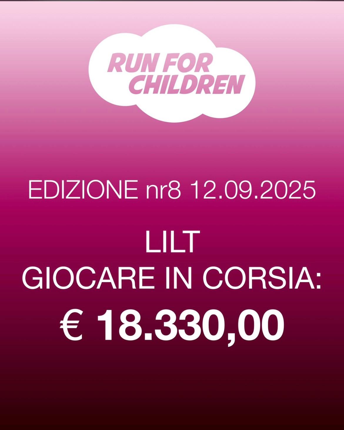 E da record è anche la cifra donata da Run for Children a “Giocare in corsia”, l’iniziativa