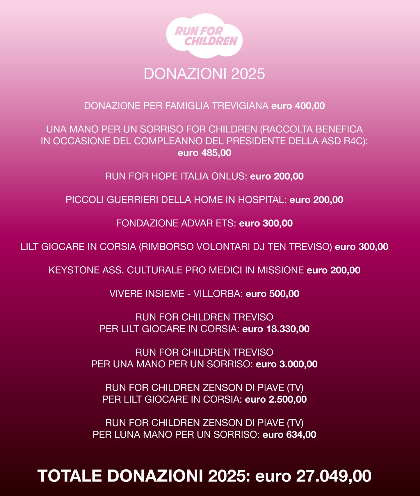 TOTALE RACCOLTO DAL 2017 DA RUN FOR CHILDREN E DEVOLUTO INTERAMENTE 152.453,00 €