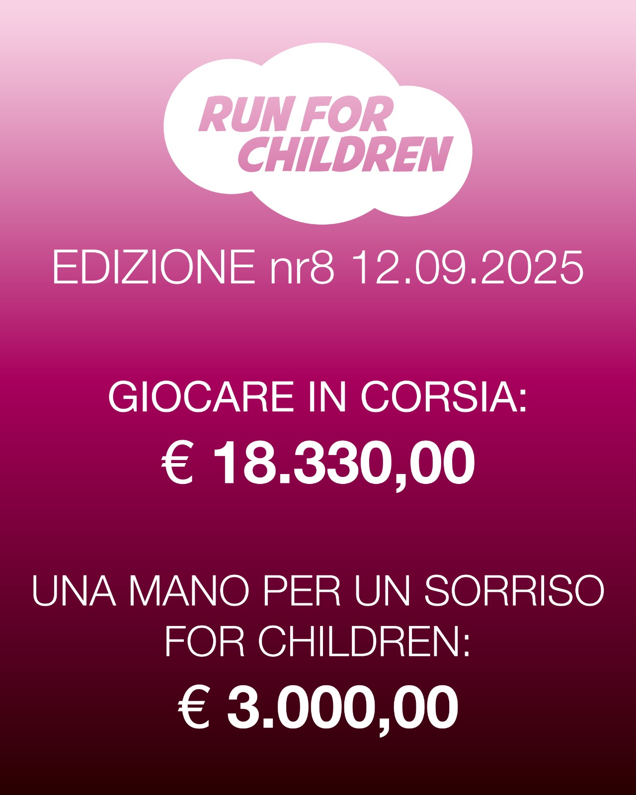 E da record è anche la cifra donata da Run for Children a “Giocare in corsia”, l’iniziativa